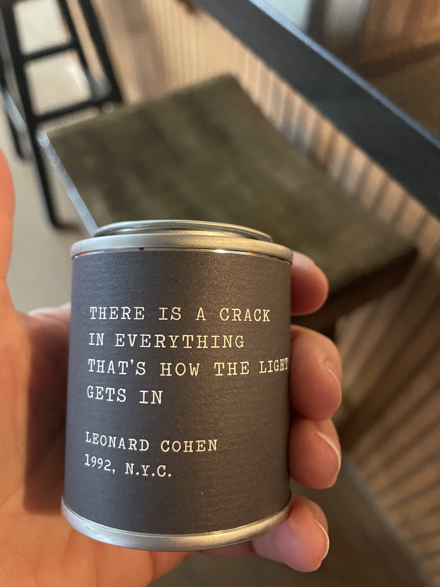 I had totally forgotten what the candle said. It reminded me in the last place that God knows exactly how and where we are “cracked” and where we are broken is where He, the light, comes in. If I was totally perfect, I wouldn’t look to the Lord for His mercy and wisdom. I would be tempted to look only to myself. I will remember Who fills the cracks, whether by sealant or light.